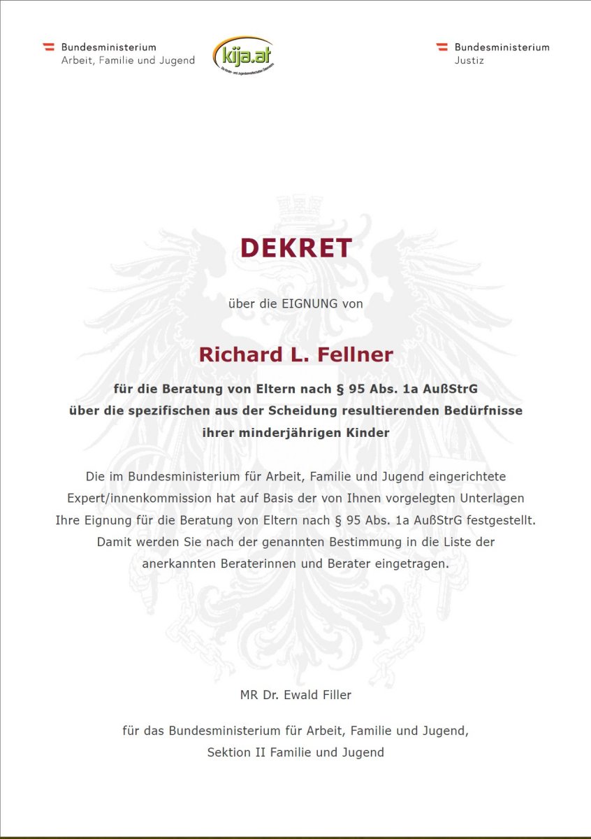 ![]() Elternberater gem. §95 Abs.1A AußStrG (BKA) | ![]() Familien-/Eltern-/Erziehungsberater gem. §107 Abs.3 Z1 AußStrG (BKA) |