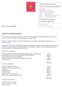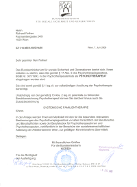 ![]() Eingetragener Psychotherapeut in der Liste des Bundesministeriums für Gesundheit und Familie | ![]() Letter of recommendation WCP (Weltverband für Psychotherapie) |
